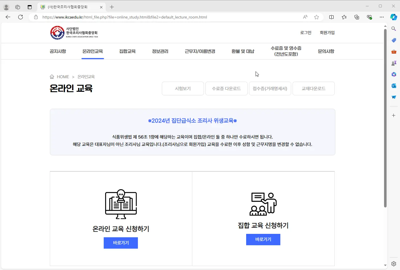 조리사협회 온라인 위생교육 사이트 (www.ikcaedu.kr)